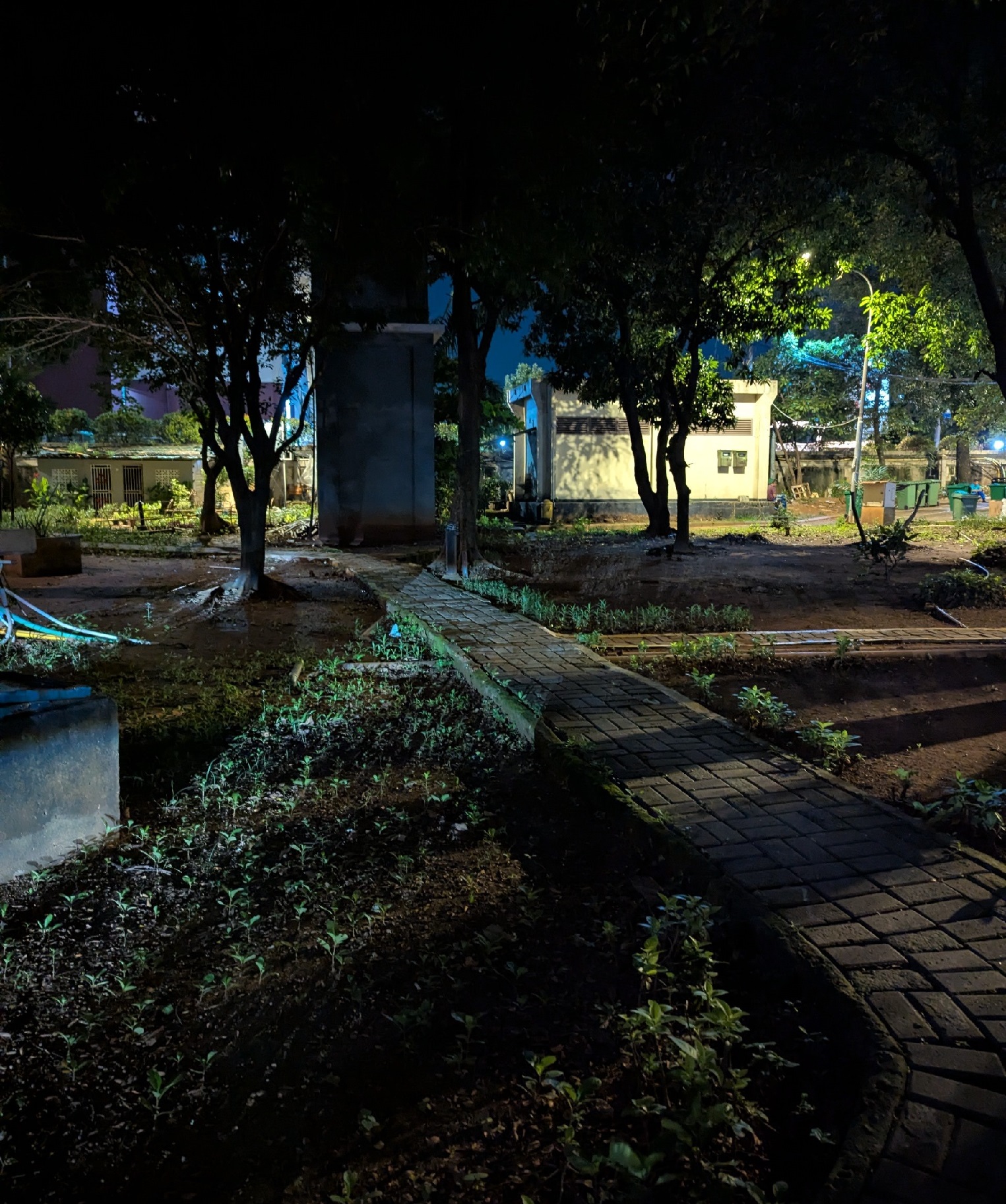 I slow down when I reach the tiny playground. Not to see children play (it’s way too early for that), but because the walkway in this section is pebbled asphalt. The marble-sized stones might as well be real marbles in the morning rain. Running on these would guarantee a fall and a trip to the hospital. Good thing there’s one next door. The blinking red light and “IGD” – Instalasi Gawat Darurat (Emergency Room) sign are clearly visible over the wall. I hate hospitals, so I walk the next 125 feet or so and cross the road to another brick path.